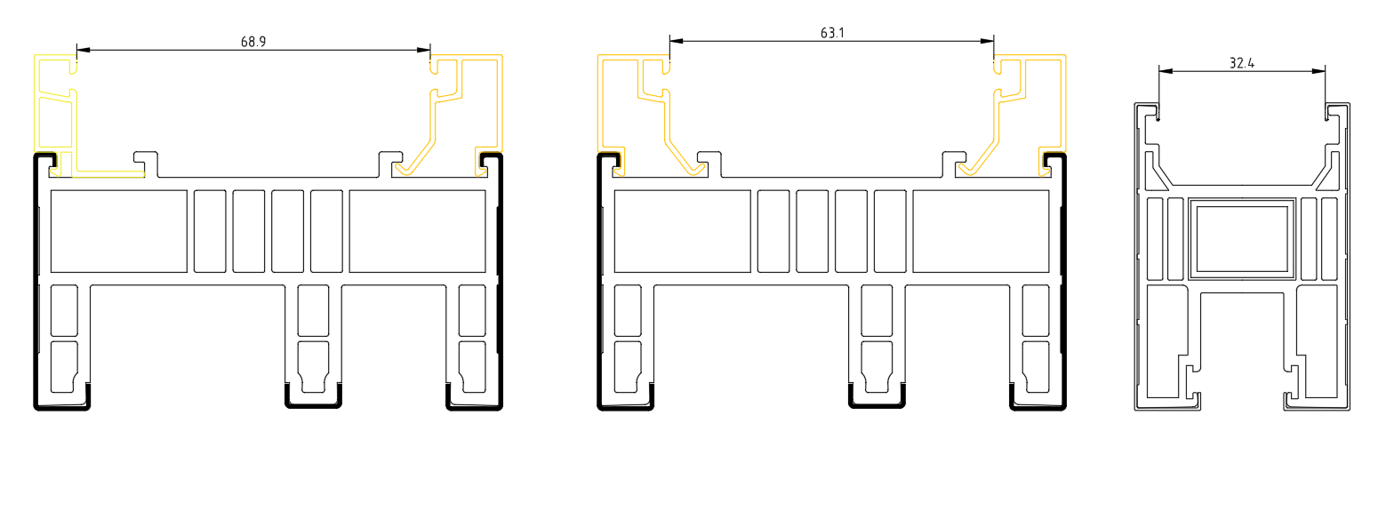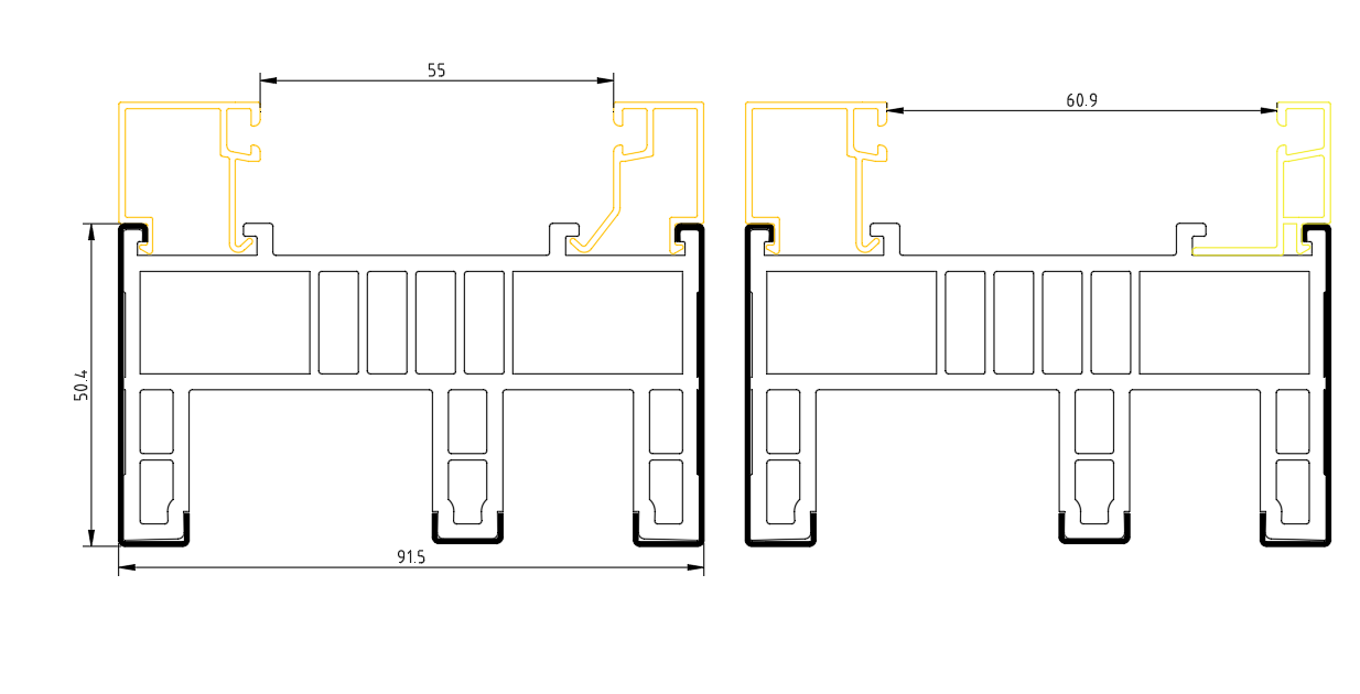 根据不同建筑物要求,多腔隔热金属门窗复合型材可以是: