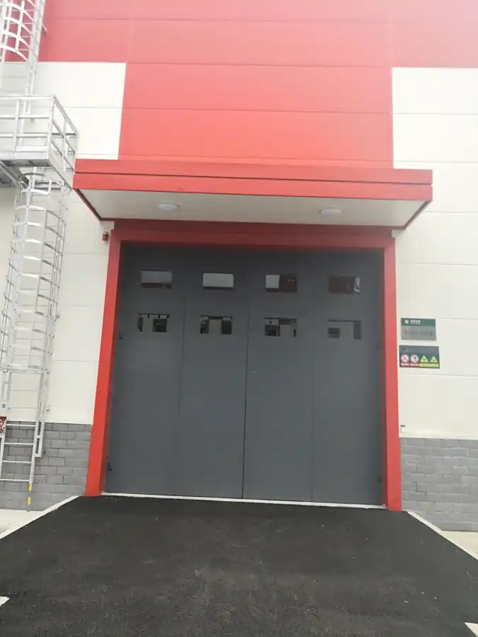 (2)单门框,双门扇结构,可适用于2M×2M以上大门 电动垂直悬挂门: